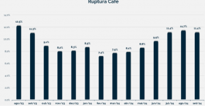 O café continuou a registrar estabilidade no indicador de ruptura de setembro ante agosto, saindo de 11,5% (agosto) para 11,4% (setembro), voltando aos mesmos patamares de julho. O número representa uma redução de 0,3% no comparativo mês após mês.
