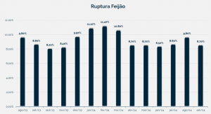 Ao contrário dos dados de agosto, os itens por categorias de produtos mostraram uma redução no índice de ruptura. Produtos como arroz, café, feijão e ovos, que tinham registrado aumento no mês anterior, apresentaram queda em setembro. No entanto, os preços do arroz, feijão e café subiram. O café em pó, amplamente consumido pelos brasileiros, por exemplo, sofreu elevação de 9,3% no preço médio por quilo de agosto para setembro.