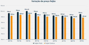 O feijão também registrou queda de 1,1% no índice de ruptura em relação ao mês anterior. Em contrapartida, os preços subiram: o feijão-preto aumentou 9% e o feijão-carioca, 2% no mesmo período.