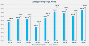 Em setembro versus agosto, o preço do arroz parboilizado aumentou 4,2%, enquanto o arroz branco registrou crescimento de 3,4%.