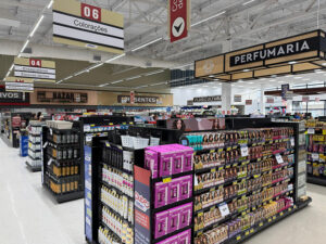 Já a perfumaria segue o conceito dos free shops e utiliza uma comunicação visual específica, setorizada em Espaço Mulher e Espaço Homem. A comunicação visual também é utilizada como recurso no Açougue para se comunicar com o cliente sobre a variedade de cortes disponíveis.