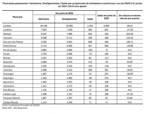 Maringá foi a cidade com maior crescimento nos empregos com carteira assinada e registrou elevação de 203,3% em relação a junho de 2023. Com 8.247 contratações e 7.695 demissões, o saldo no município foi de 552 postos de trabalho.